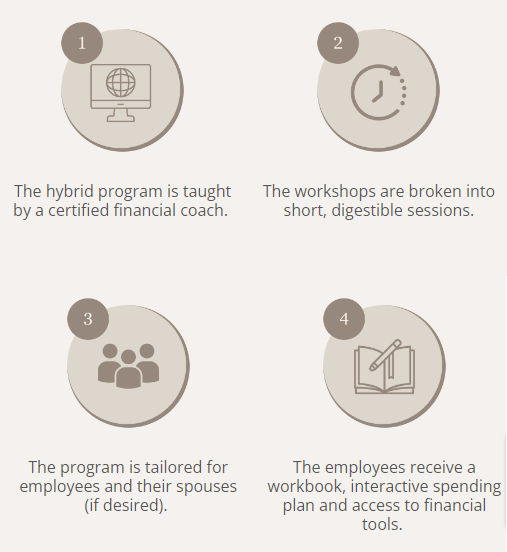 It all starts with the right mindset. Our 15-year seasoned coach, Maria Hewitt, will help you cultivate a healthy money mindset. Your team will learn to reframe their thoughts and feelings about money, ultimately enabling them to make better financial decisions and reduce financial stress.